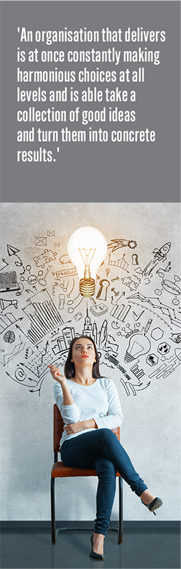 Strategy without execution is just a collection of ideas. An organisation that delivers is at once constantly making harmonious choices at all levels and is able take a collection of good ideas and turn them into concrete results. So, at the start of the next strategy and planning cycle, consider whether your organisation has what it takes to deliver.